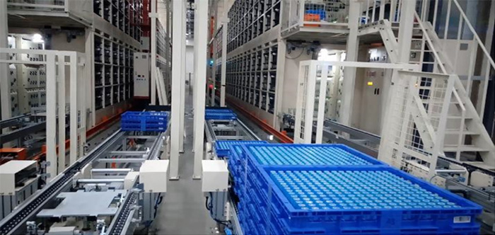 Features:AS/RS, inbound and outbound conveyor belt, lifter