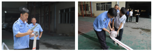 首先演示的是水槍使用環節,保安隊員現場展示了如何正確、高效地運用水槍,對中低層區域進行精準撲救滅火。從握槍的手勢到水帶的收卷,細節一一講解,讓員工們對水槍的使用有了更深入的了解。