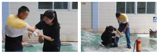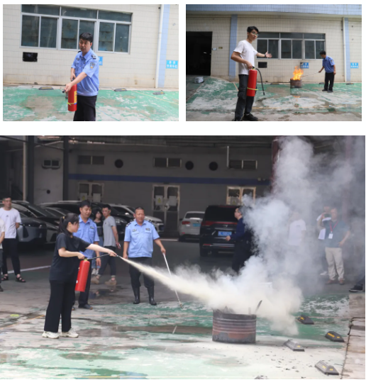 緊接著是滅火器的實戰教學。倉庫部黃經理與雷隊共同上陣,現場演示干粉滅火器的使用方法。隨著“點火”指令的下達,火光中,員工們輪流上前,親手操作滅火器,體驗滅火的實踐過程,這不僅增強了員工們的實戰能力,也讓他們深刻感受到了消防安全的重要性。