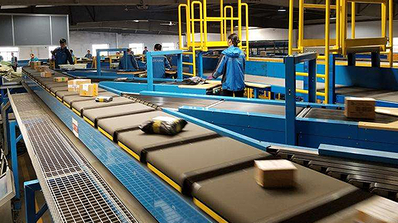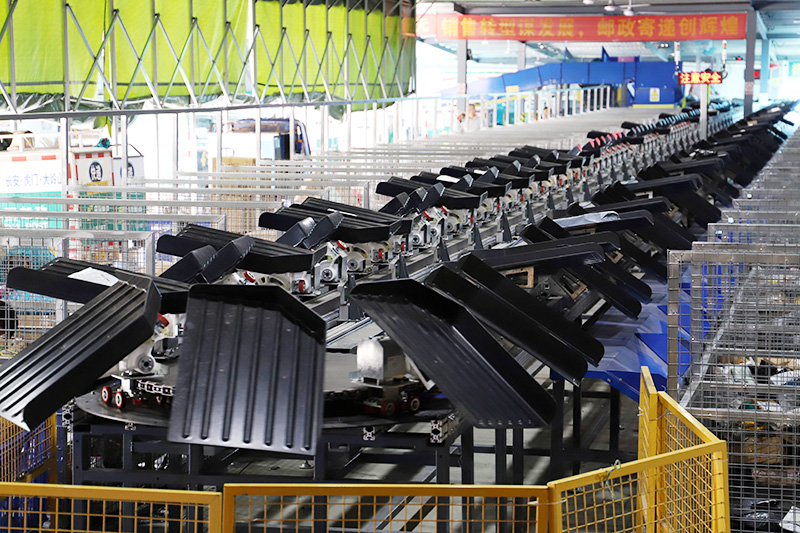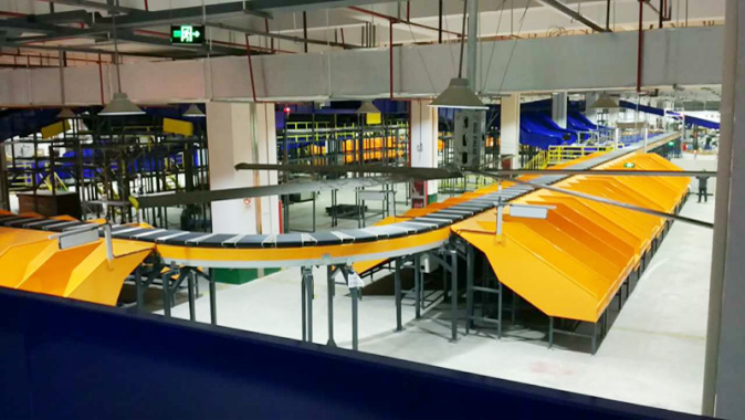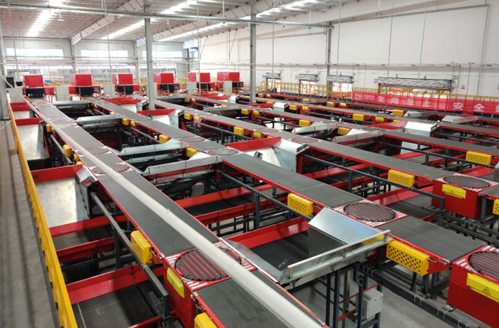 擺輪分揀機:使用了多組獨立轉動滾輪并...